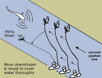 Casting a fly to swing it is dead simple. Just cast your line downstream and across at a 45-degree angle or so, and let the current carry it, making a few small adjustments—mends—to help it swing faster or slower.