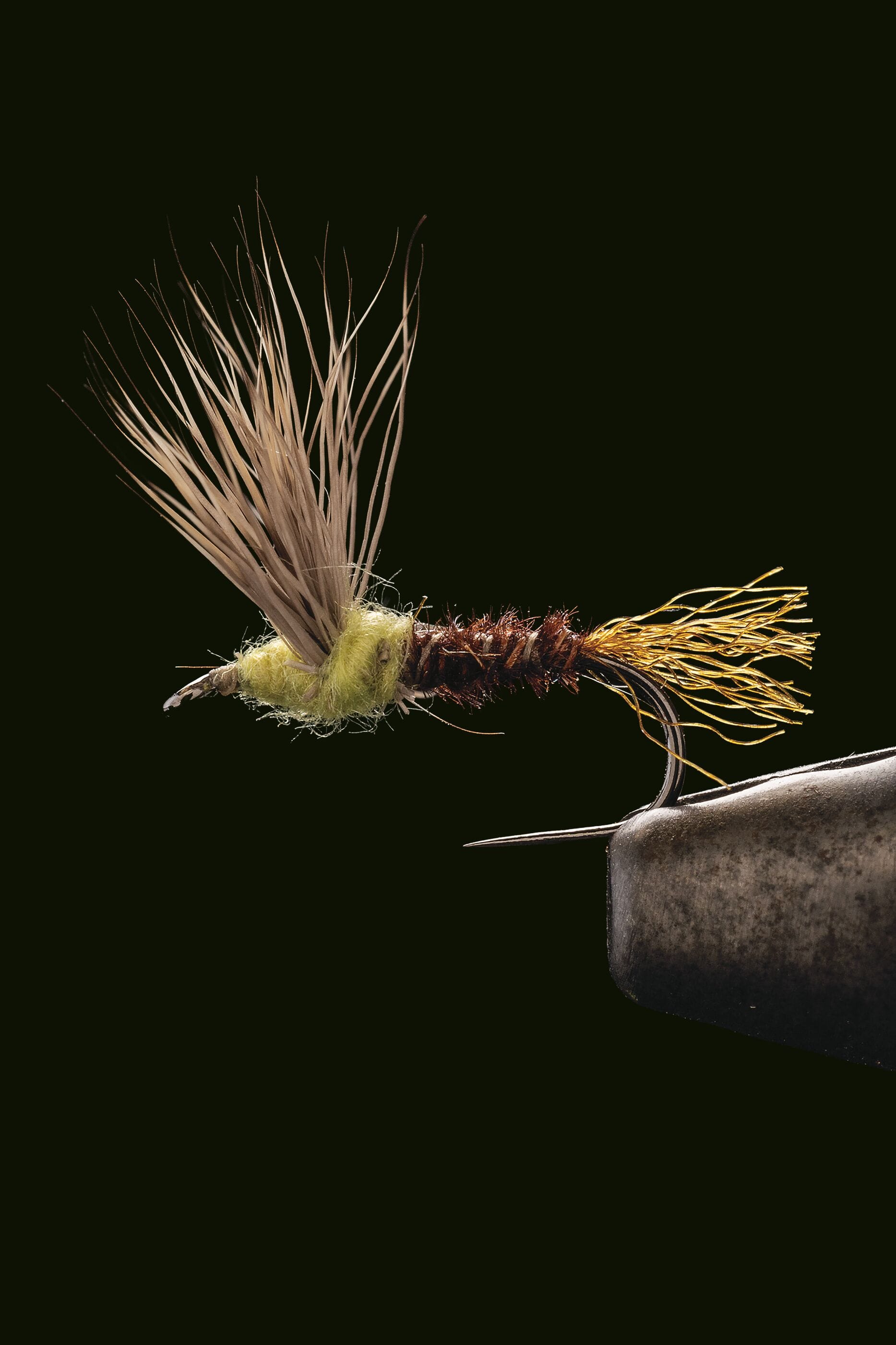 At left: a Sparkle Dun; right: an Iris Caddis, both Blue Ribbon specialties featured in Pheasant Tail Simplicity | 📷 ©Tim Davis, courtesy Patagonia