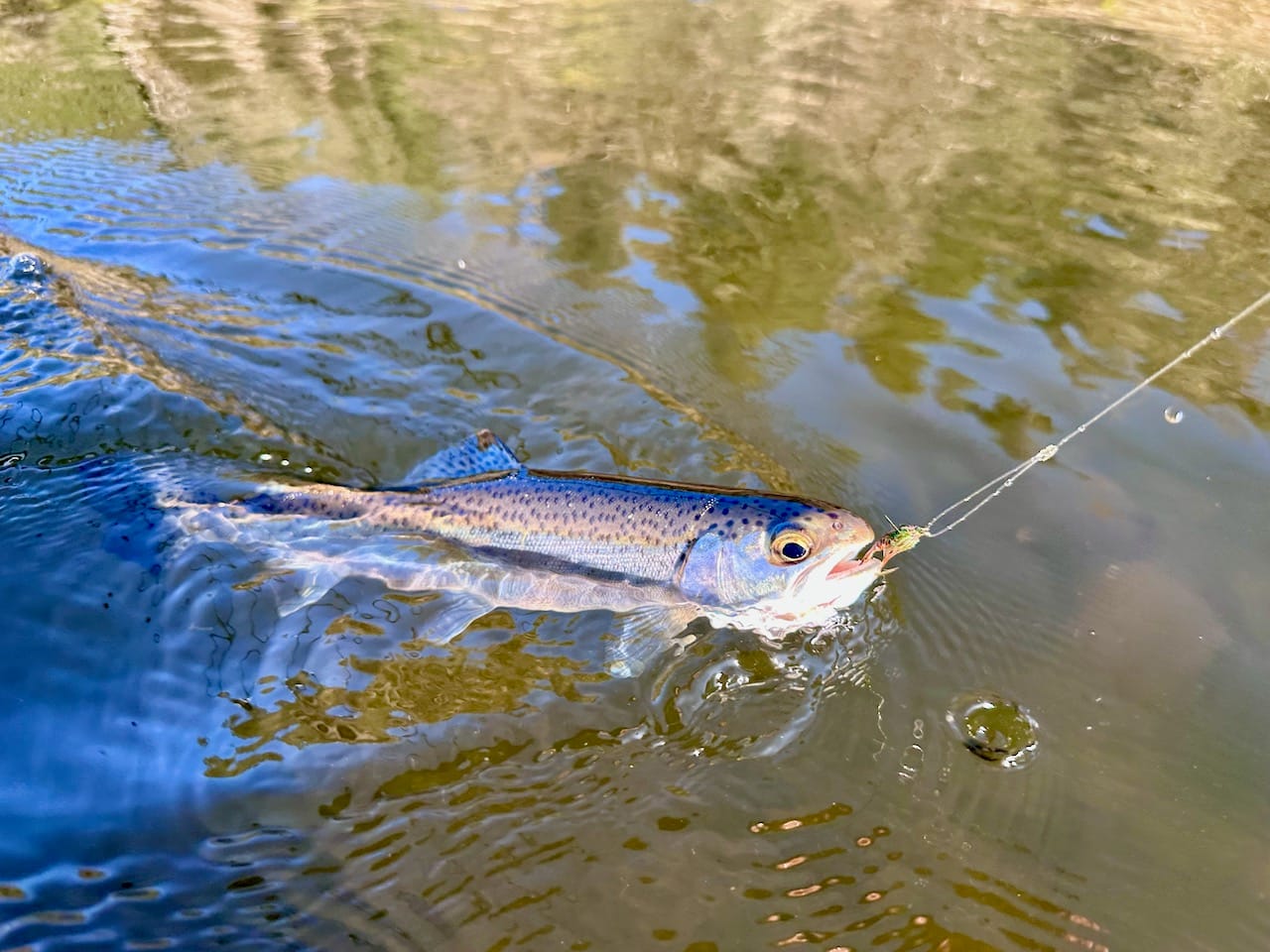 I did, however, manage a resident rainbow on my size eight pheasant tail soft hackle. That's right: I'm committed to the bit. After reading in Pheasant Tail Simplicity that Patagonia boss Yvon Chouinard has caught many an anadromous fish on a big PT soft hackle, I figured why not give it a go.